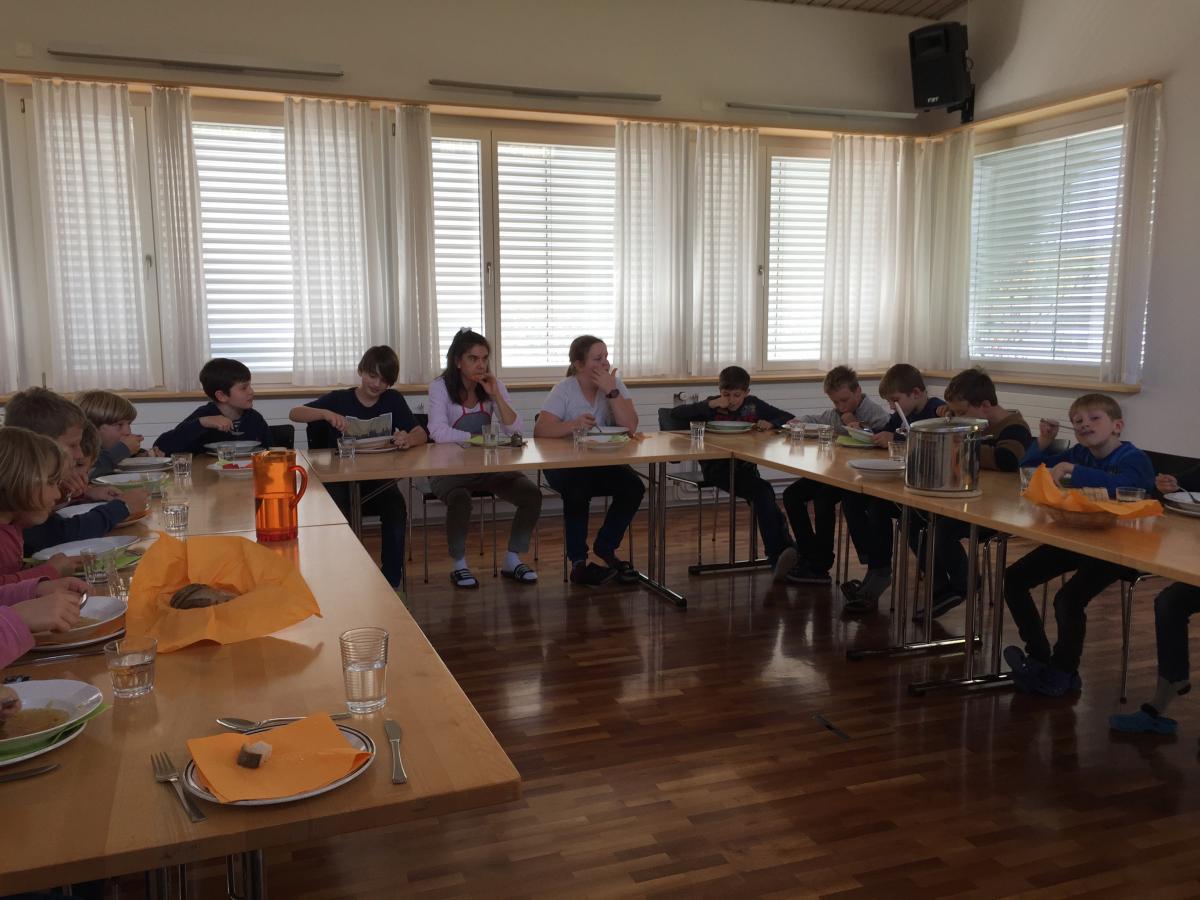 Die Kinder geniessen ein ausgewogenes und gesundes Mittagessen in strukturierter, freundlicher und lebhafter Atmosphäre. Diese Dienstleistung kann auch unabhängig von der Kinderbetreuung in Anspruch genommen werden. Am Donnerstag wird ein erweiterter Mittagstisch angeboten. Dieser ist auch für Drittpersonen offen. Anmeldung bitte 48 Stunden im Voraus unter Tel. 079 244 23 04.